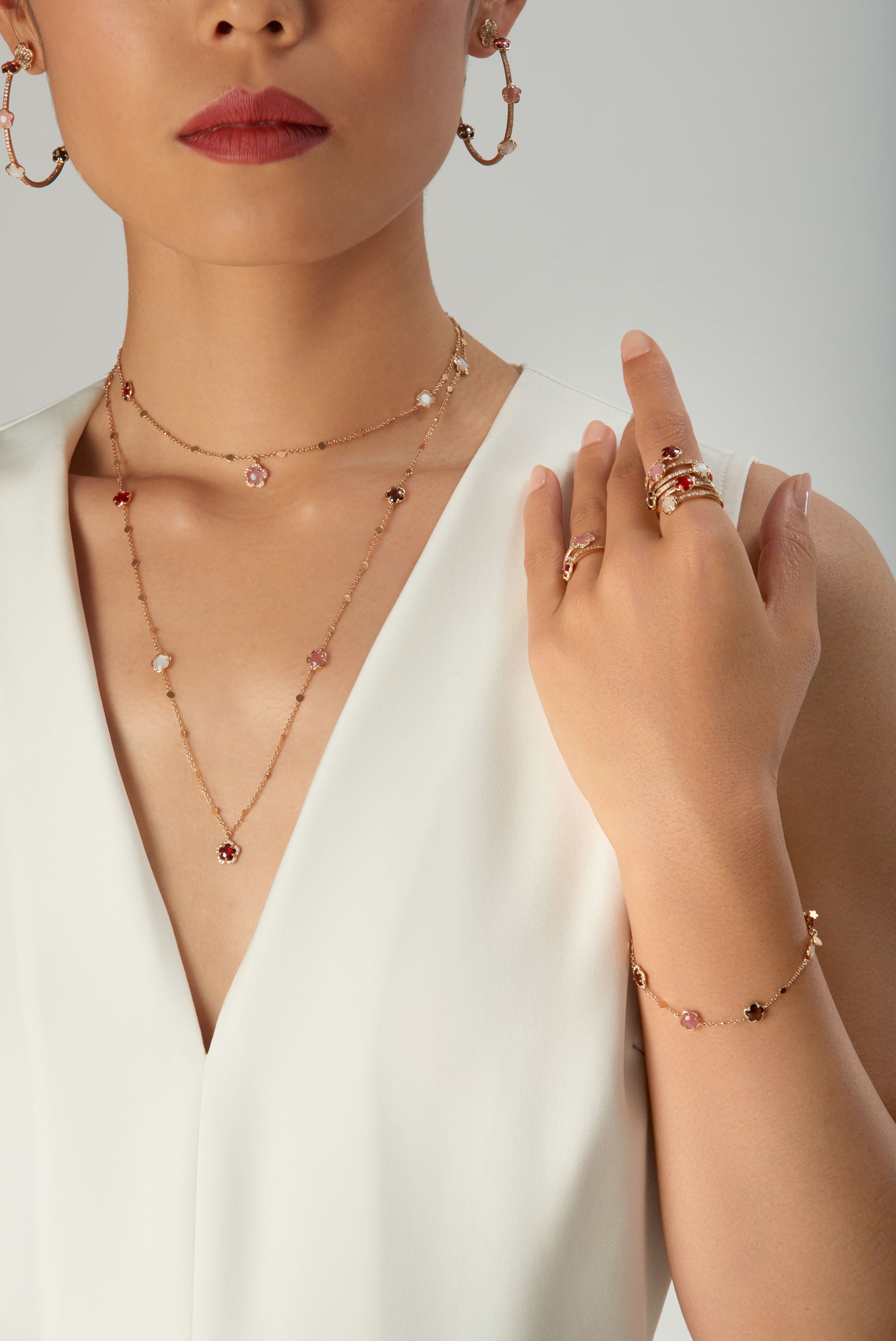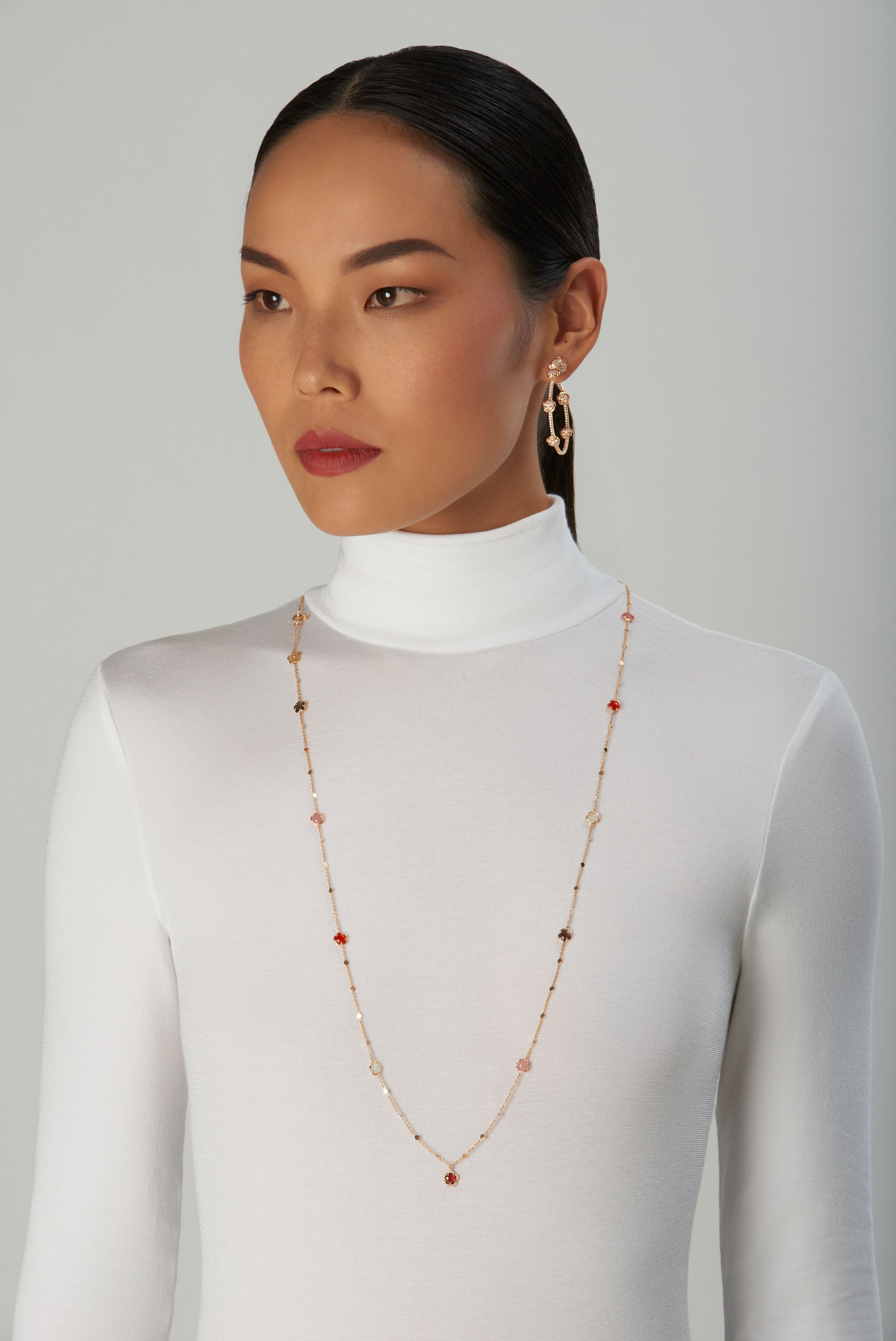 Sautoir in 18k Rose Gold with Pink Chalcedony, Red Garnet, Moonstone, Smoky Quartz, Carnelian and Diamonds.