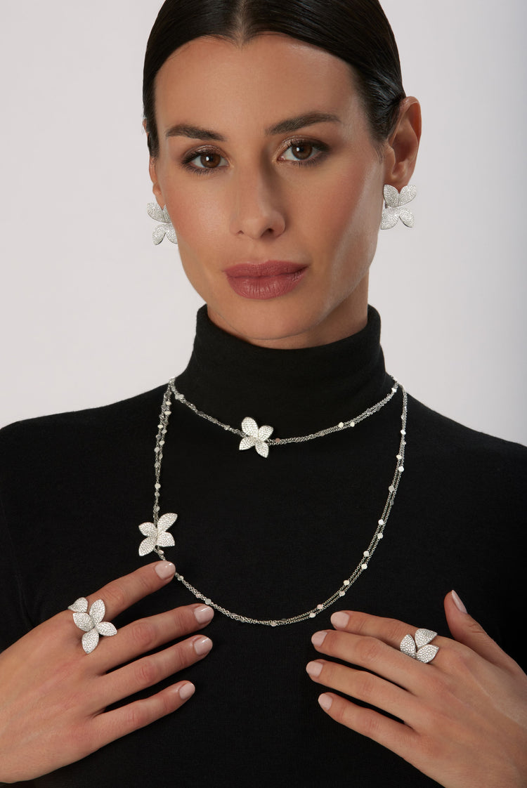 A tribute to female worlds that are full of passion. Flowers, leaves and butterflies shine on hands. Graceful and precious magic on the skin.