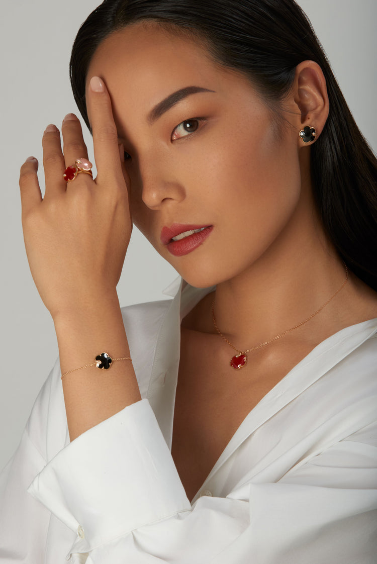 Necklace in 18k Rose Gold with Carnelian, White and Champagne Diamonds.