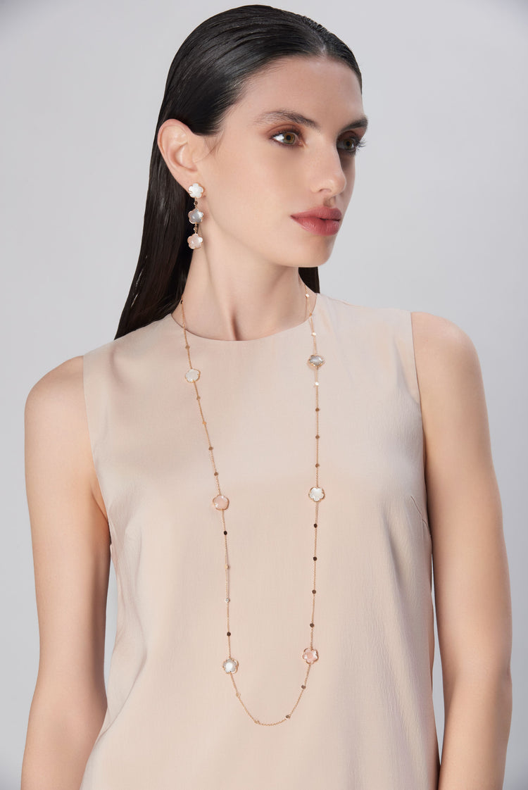 Sautoir in 18k Rose Gold with Grey, White, Pink Moonstone and White Diamonds.