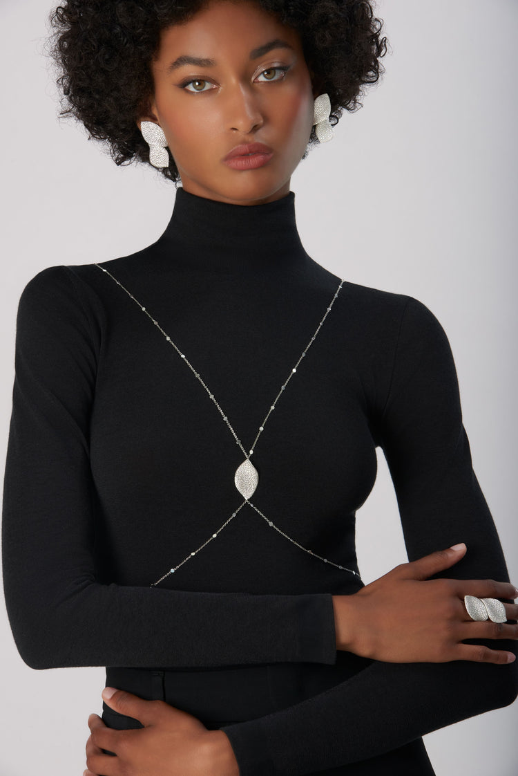 The leaves reflect wings that empower women to take flight to wards the marvels of the world, in a journey redefining all her divinity.