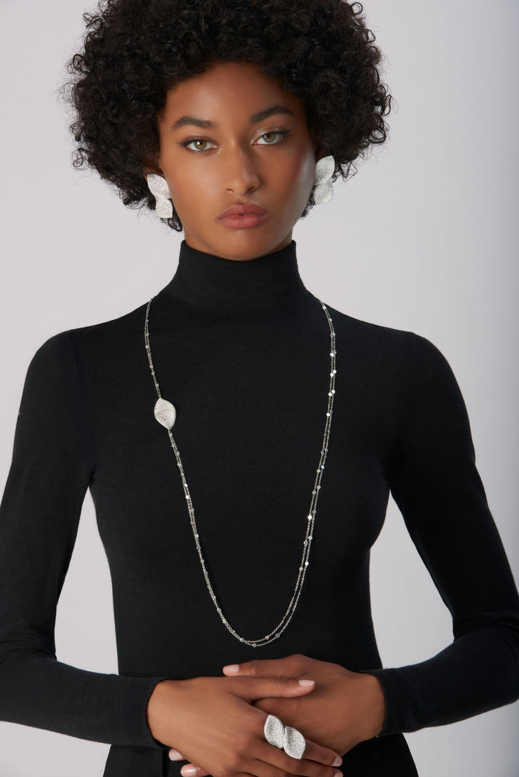 The leaves of the Aleluiá collection have been crafted and set one by one, to then be assembled later on. This makes it possible to maintain the shape of the leaves and the precision of the overlays.