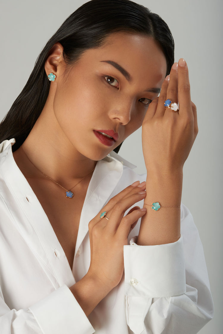 Bracelet in 18k Rose Gold with Sea Moon gem made of Turquoise and White Moonstone Doublet, White and Champagne Diamonds.
