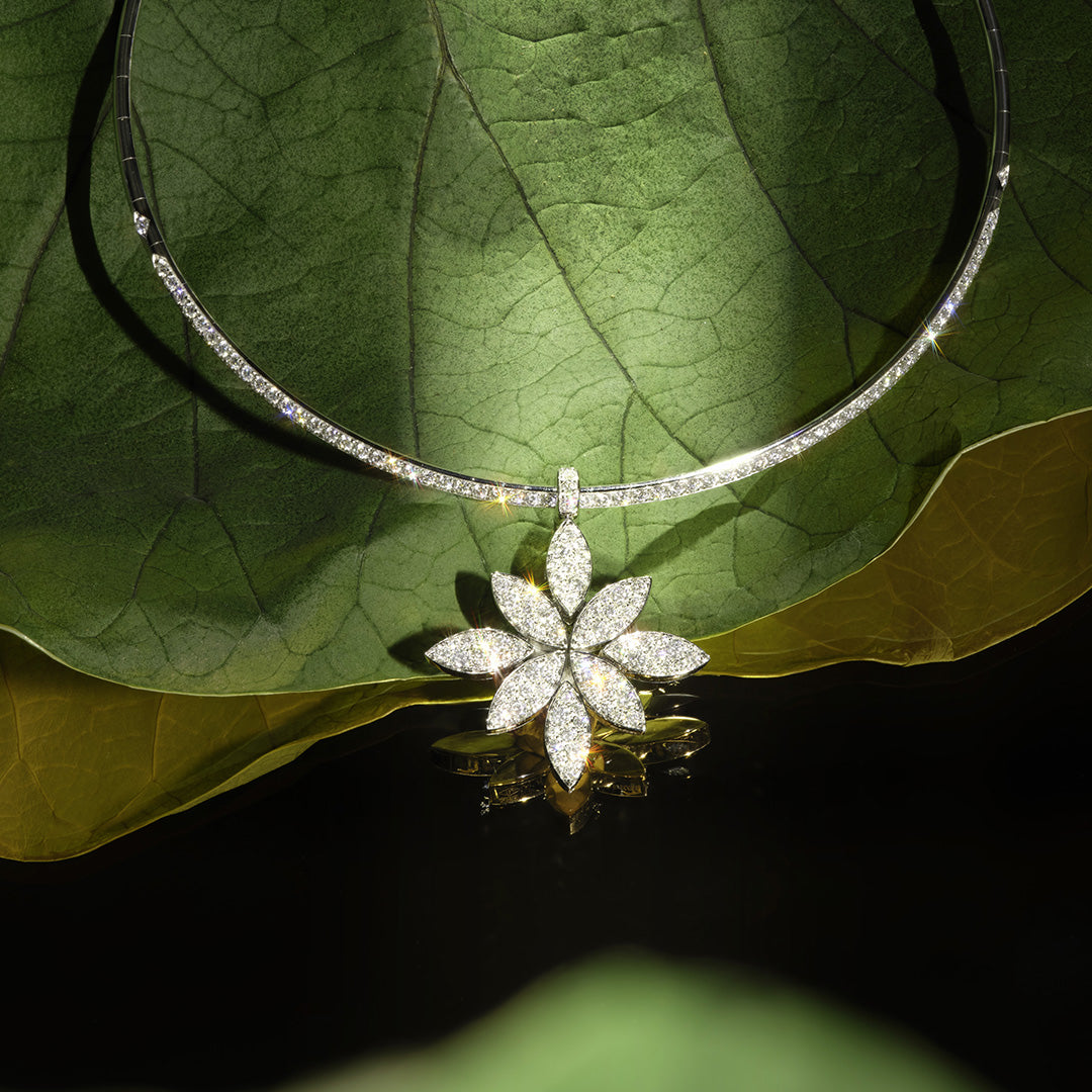 Its lotus flowers—symbols of rebirth and spirituality—emerge from the water basins, transforming light and beauty into a ritual of peace.